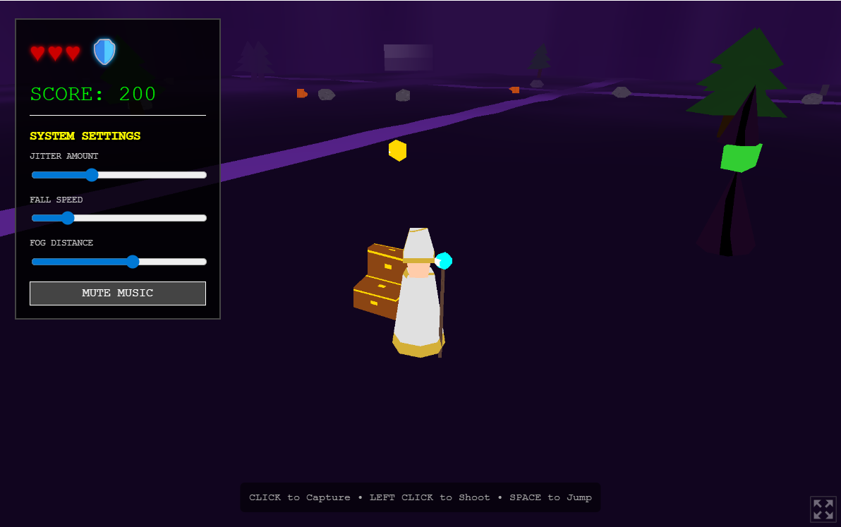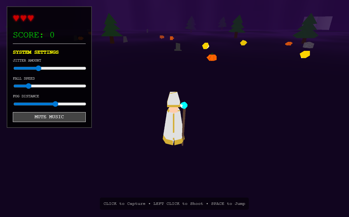 Use the mouse to look around the WASD keys to move. left Click to shoot magic